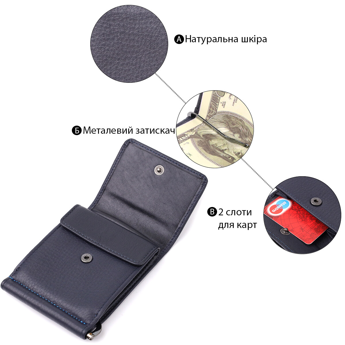 | Особенности кошелька | с зажимом для денег |