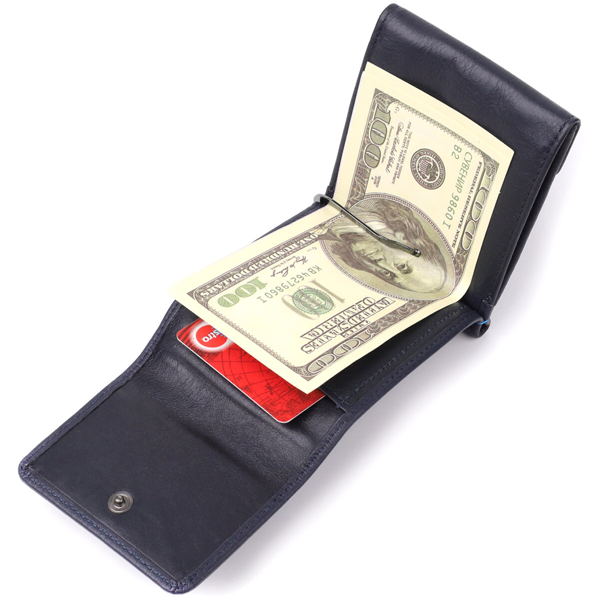 – металлический зажим надёжно фиксирует купюры;