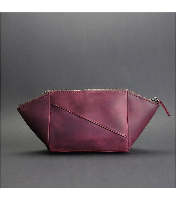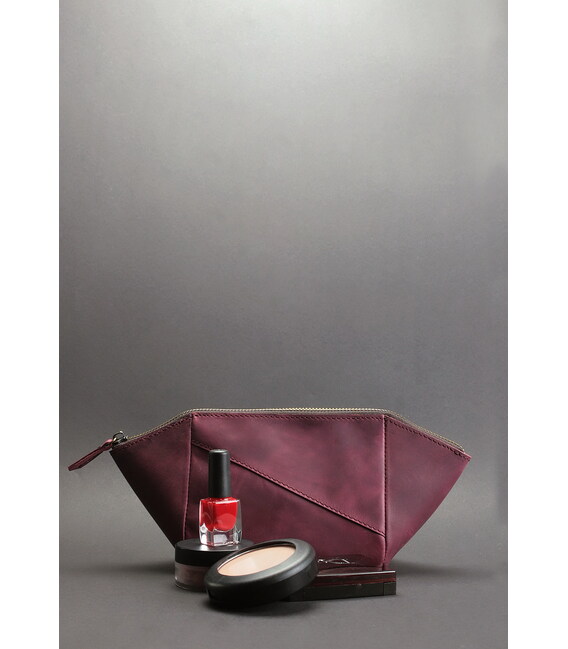 Описание Женская кожаная косметичка 2.0 бордовая Crazy Horse