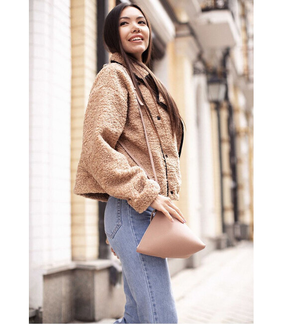 Описание Кожаная женская сумка-косметичка Пирамида светло-бежевая