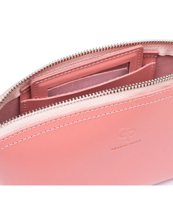 Вместительная женская косметичка из натуральной итальянской кожи нежного пудрового цвета. Аксессуар закрывается на молнию. В пудровом цвете изделие смотрится очень нежно и женственно. Такая косметичка добавит вам легкости и не оставит равнодушной ни одну девушку. Внутри косметички - автономное зеркальце. С такой косметичкой вам будет удобно отправляться в путешествие и просто хранить личную косметику. В нее с легкостью поместится ваша декоративная косметика, салфетки, гель для рук, маленькие духи. Аксессуар упакован в войлочный чехол. Такая косметичка станет прекрасным подарком для любой девушки. А в путешествии такой аксессуар просто идеальная находка.