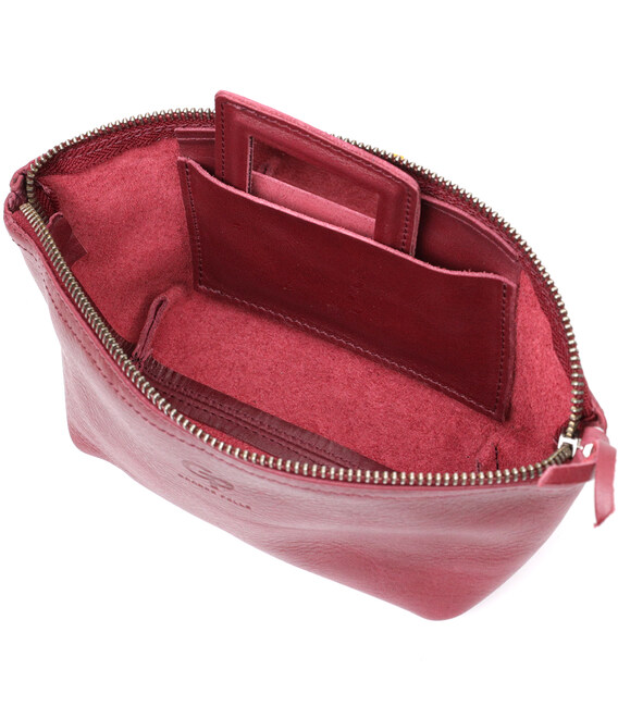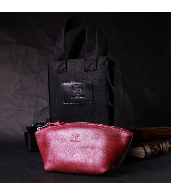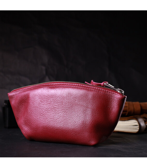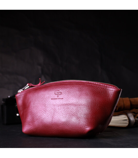 Описание Удобная женская кожаная косметичка GRANDE PELLE 16792 Бордовый