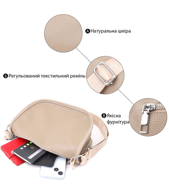 Описание Полукруглая сумка для женщин из натуральной кожи Vintage 22907 Бежевый