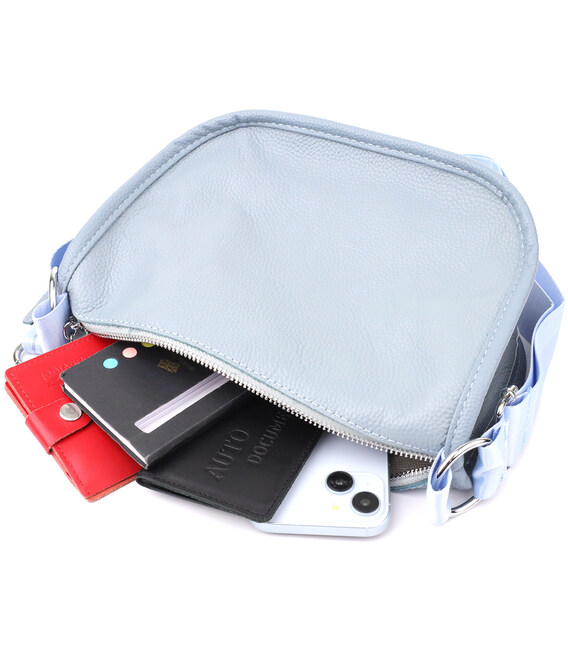 Полукруглая сумка для женщин из натуральной кожи Vintage 22908 Серо-голубой