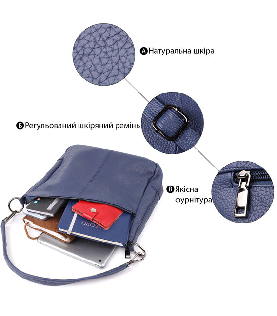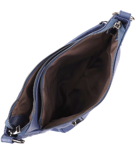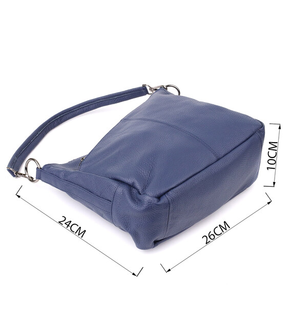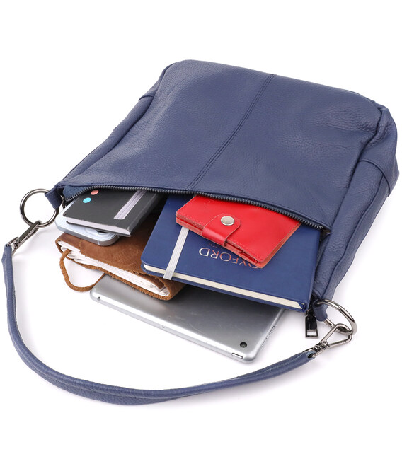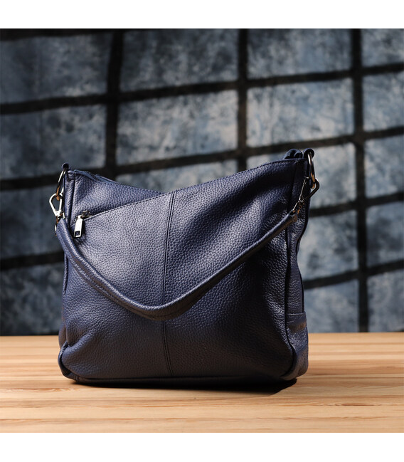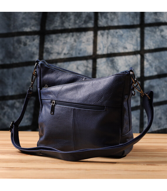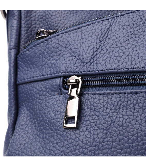Синяя кожаная сумка с тремя отделениями — это гармоничное сочетание стиля, практичности и качества, которое подчеркнет ваш вкус и подойдёт под любой гардероб.
