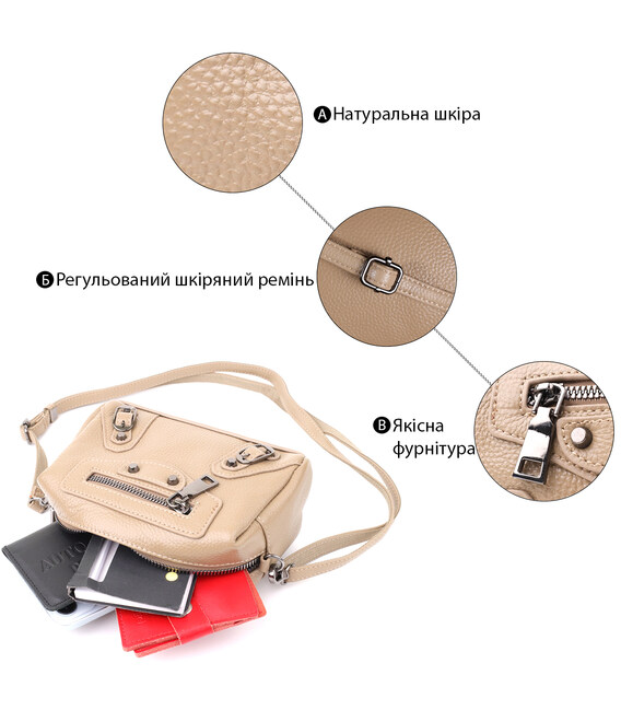 Компактная сумка для женщин из натуральной кожи Vintage 22924 Бежевый