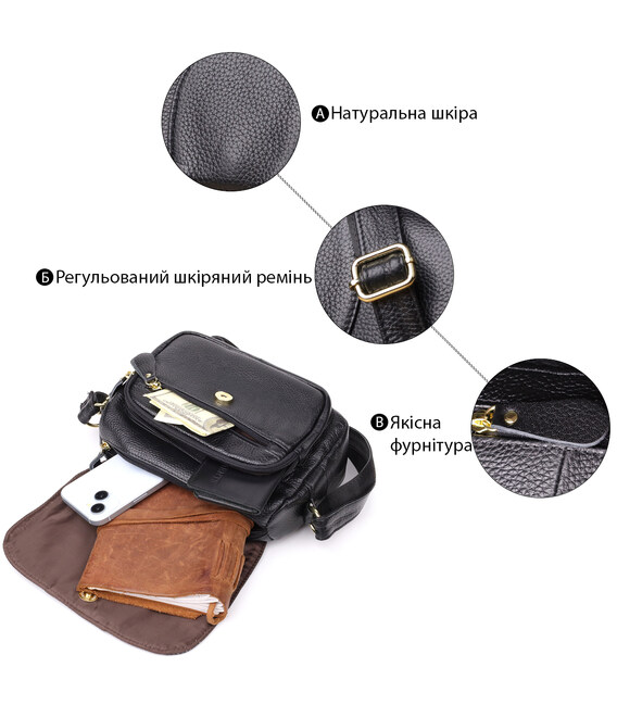 Описание Качественная сумка из натуральной кожи для стильных женщин Vintage 22972 Черный