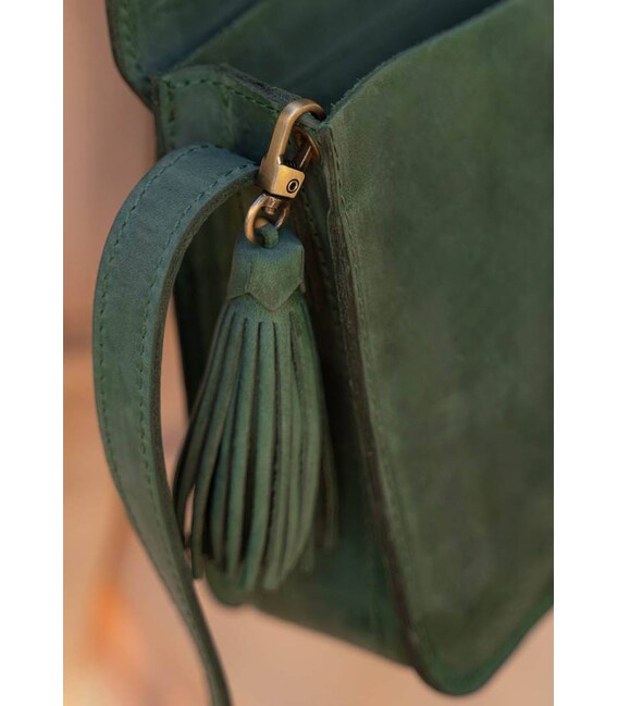 Кожаная женская бохо-сумка Лилу зеленая Crazy Horse