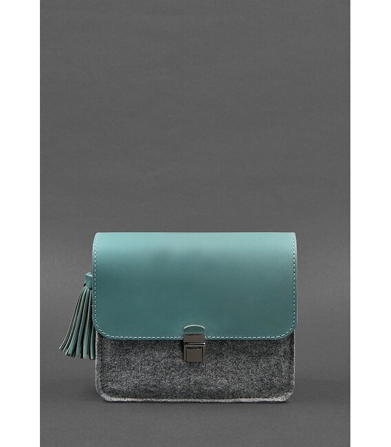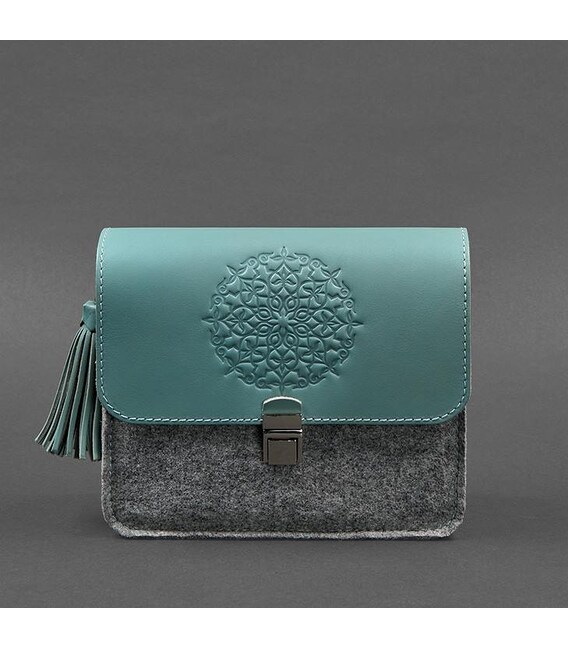 Фетровая женская бохо-сумка Лилу с кожаными бирюзовыми вставками