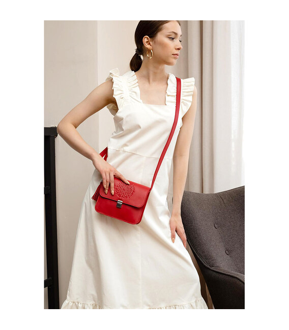 Описание Кожаная женская бохо-сумка Лилу красная