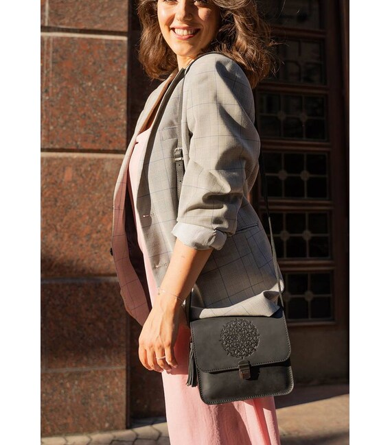 Сумочки кросс-боди настолько тесно вошли в жизнь девушек, что уже тяжело представить гардероб современной барышни без такой сумочки. Такая модель поистине универсальна и невероятно удобна! Куда бы Вы не пошли, важные мелочи всегда будут под рукой, но и руки будут свободны. Удобно! Не так ли?Но приятно, когда сумка не только удобна, а еще и красива. Наша бохо сумка Лилу именно такая.Очень стильное тиснение в виде индийской мандалы украшает клапан сумки. С такой сумочкой Вы всегда будете в центре внимания.Изготовлена сумка из натуральной кожи Crazy Horse. Эта кожа имеет красивую матовую поверхность, на которой со временем могут появиться небольшие потертости и царапинки, которые абсолютно не портят внешний вид аксессуара. Это выглядит очень стильно и винтажно.Два отделения и дополнительные карманы внутри сумки помогут оптимально распределить все вещи.Носить сумку удобно на плече или через плечо на длинном кожаном ремешке. Длина ремешка регулируется.По своему обычаю, для наших клиентов мы подготовили несколько приятных сюрпризов:Съемную кисточку, которая служит милым украшением и может использоваться как брелок. Холдер для наушников. Тетрадка с повторением мотива «мандала».Гарантия на сумку - 3 года с момента покупки.ВНИМАНИЕ! Выделка данной кожи предполагает естественное появление на ней царапин и потертостей в ходе использования! От этого изделие становится более индивидуальным и приятным, это оценят настоящие поклонники винтажного стиля:) А так же первое время кожа может краситься при сильном трении об другие предметы - это особенность её выделки, постепенно этот эффект уменьшается, кожа полируется и приобретает чуть глянцевый эффект.Фурнитура и комплектация может быть изменена производителем