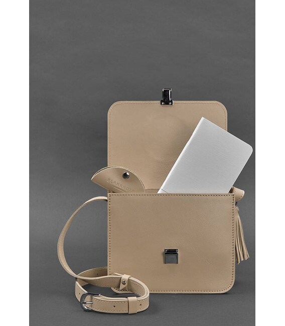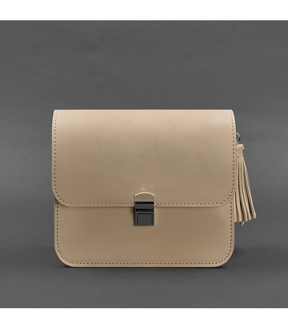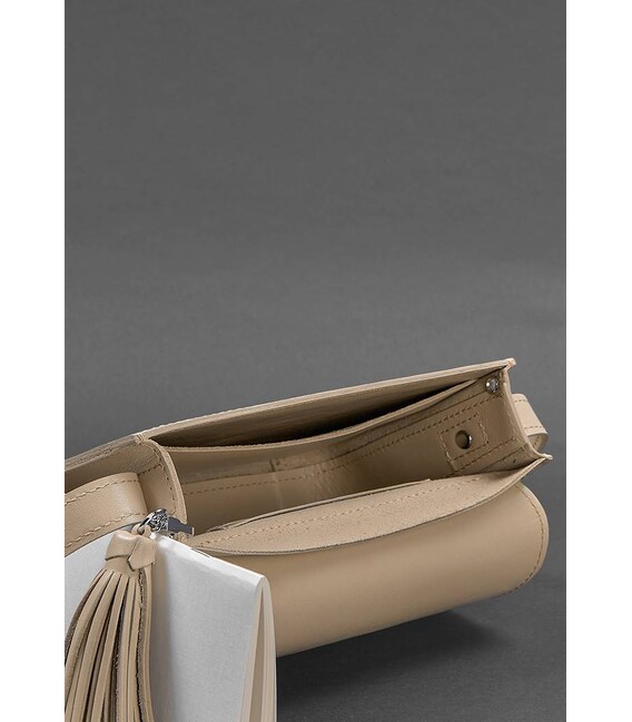 Кожаная женская бохо-сумка Лилу светло-бежевая краст