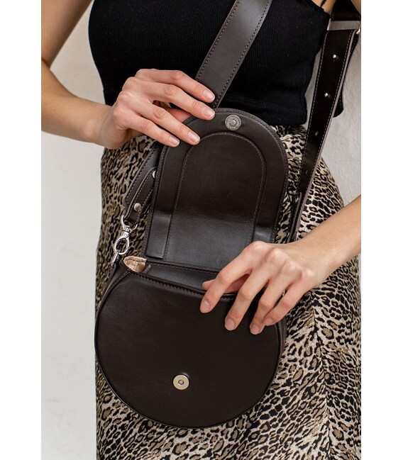Описание Женская кожаная сумка Mandy темно-коричневая