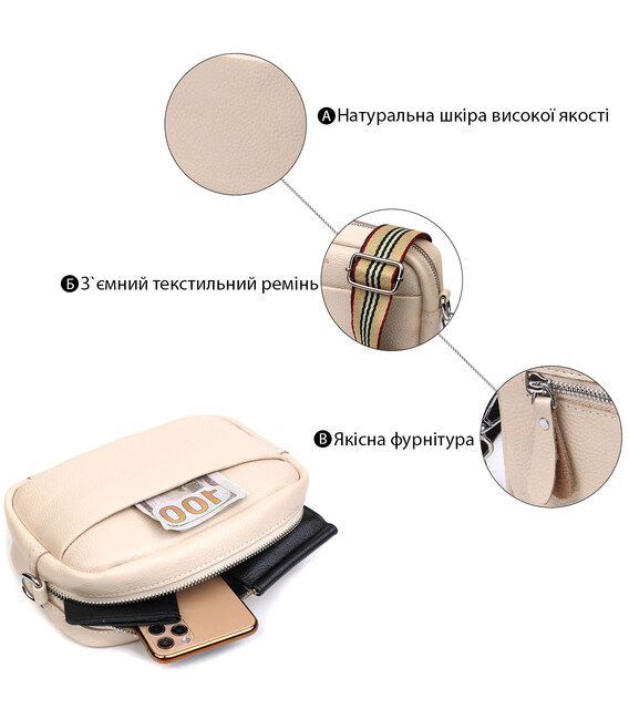 Описание Отличная женская сумка на плечо из натуральной кожи 22121 Vintage Белая