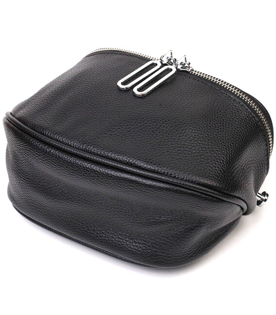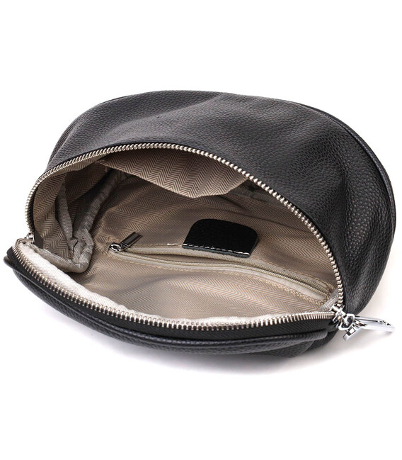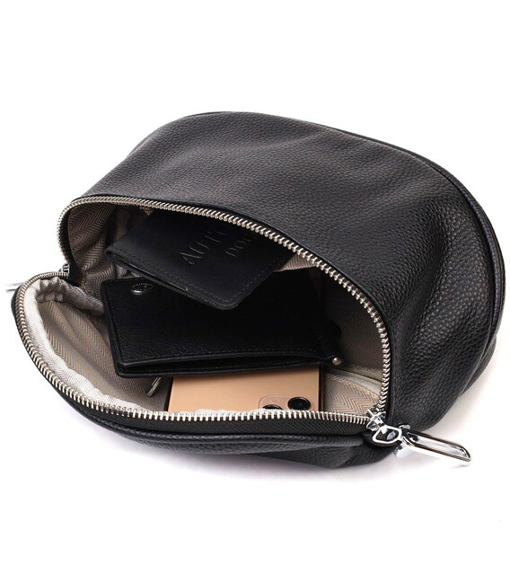 Женская сумочка в черном цвете из натуральной мягкой кожи высокого качества. Изделие очень удобное, можно носить на плече и через плечо, отличный повседневный вариант небольшой сумки. Модель дополнена фурнитурой серебристого цвета. Аксессуар имеет одно основное отделение в котором два кармашки - на молнии и открытого типа. Модный и практичный вариант сумки для стильных женщин.