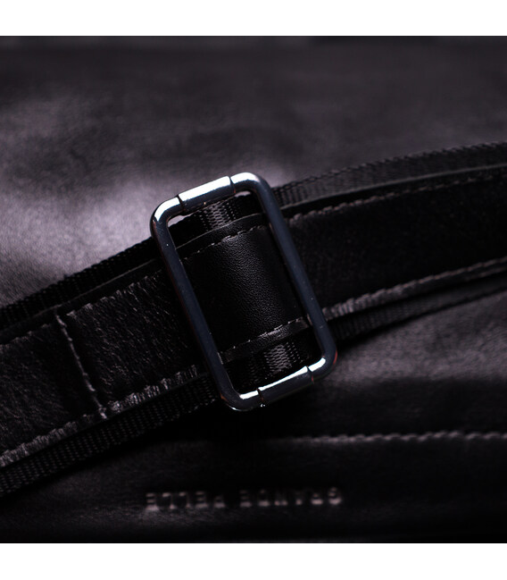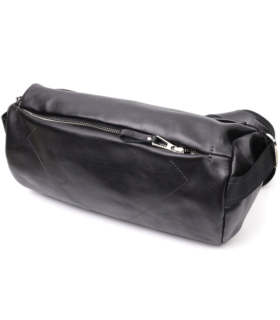 Интересная мужская сумка через плечо нестандартного дизайна, которая очень модная на сегодняшний день. Выполнена из прочной и износостойкой натуральной кожи. Цвет черный, фактура гладкая и глянцевая. Фурнитура серебряного цвета, регулируемый плечевой ремень в сочетании надежной ременной ленты и натуральной кожи. Упакована данная сумка в красивый фирменный чехол с ручками.