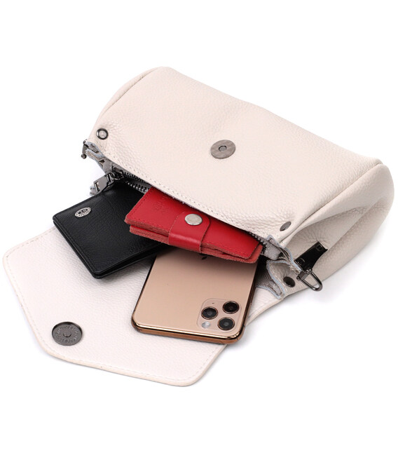 Описание Кожаная женская сумка с треугольным клапаном Vintage 22255 Белая