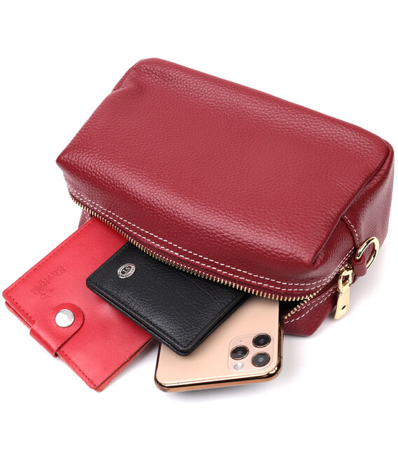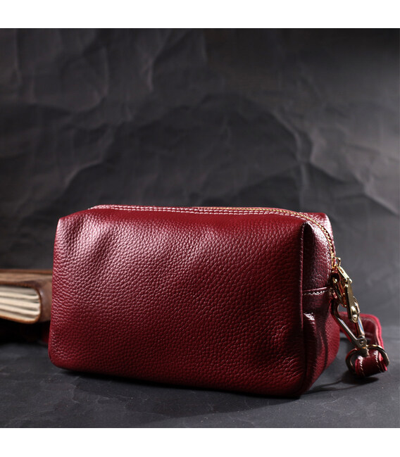 Интересная женская сумка с двумя ремнями из натуральной кожи Vintage 22274 Бордовый
