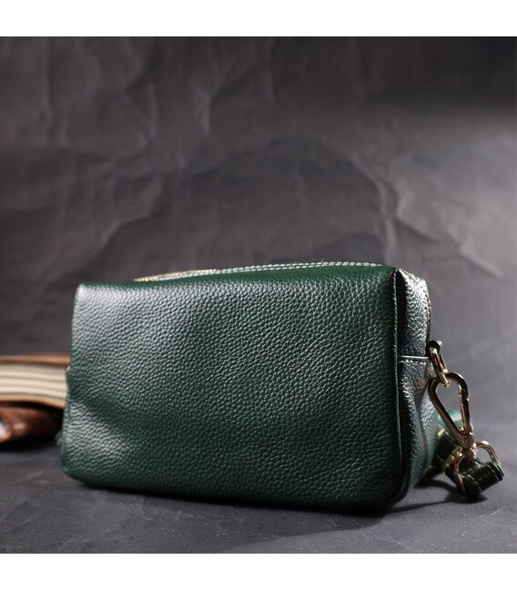 Универсальная сумка для женщин с двумя ремнями из натуральной кожи Vintage 22277 Зеленый