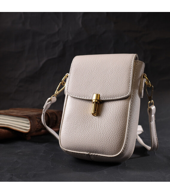 Описание Кожаная женская сумка вертикального формата с клапаном Vintage 22309 Белая