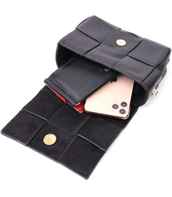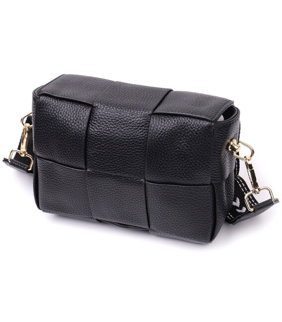 Классическая вечерняя сумка для женщин с переплетами из натуральной кожи Vintage 22313 Черная