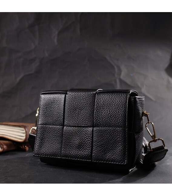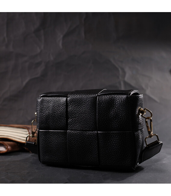 Описание Классическая вечерняя сумка для женщин с переплетами из натуральной кожи Vintage 22313 Черная
