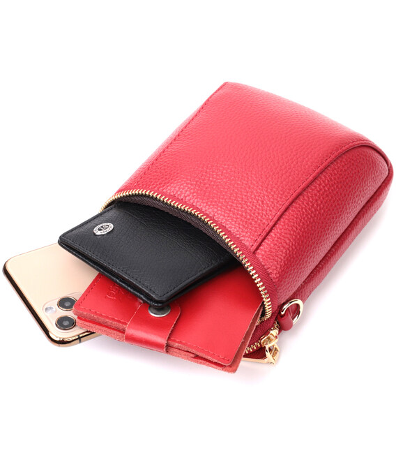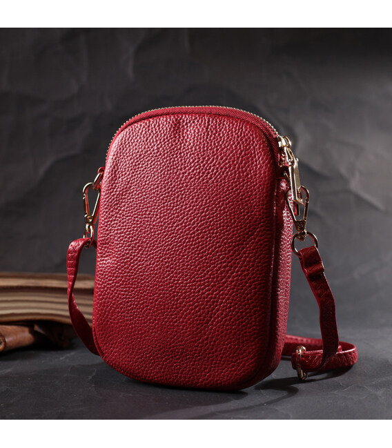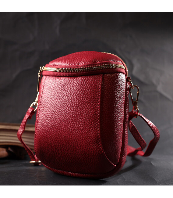 Описание Яркая сумка интересного формата из мягкой натуральной кожи Vintage 22340 Красная