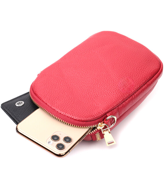 Яркая сумка интересного формата из мягкой натуральной кожи Vintage 22340 Красная