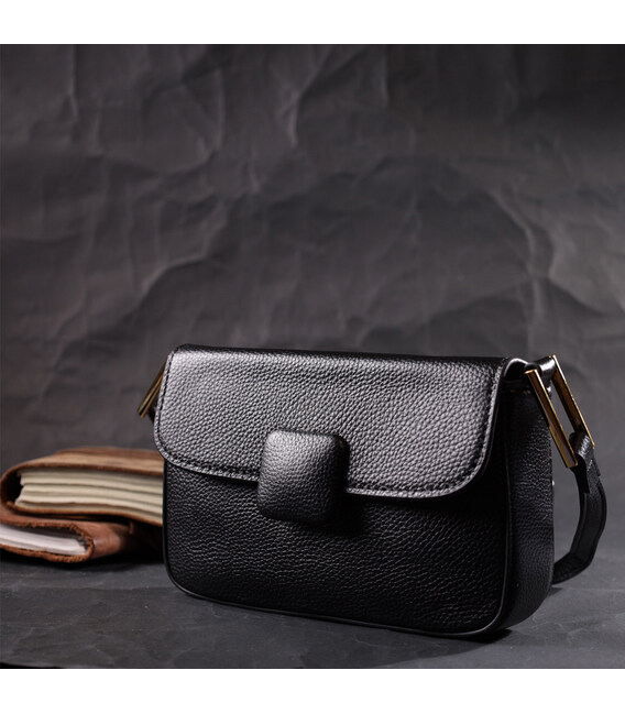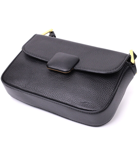 Описание Лаконичная сумка с жестким каркасом из натуральной кожи Vintage 22391 Черная