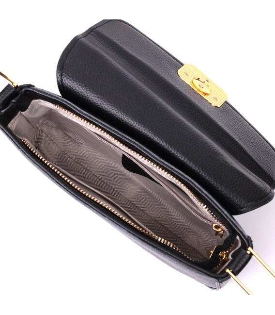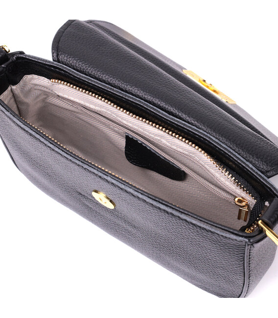 Оригинальная сумка с твердым каркасом из натуральной кожи с высоким показателем качества и износостойкости. Аксессуар состоит из основного отделения, что закрывается на молнию и клапаном на магнит, внутри которого находится потайной карман на молнии и карман открытого типа. Носить сумку можно на плече, через плечо для этого имеется несъемный регулируемый кожаный ремень, а также как клатч под рукой. В изделии использована качественная фурнитура цвета желтого золота.