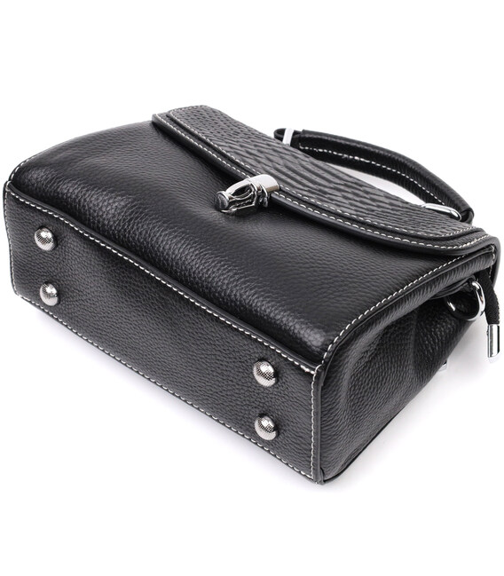 Описание Кожаная сумка для женщин с интересной защелкой Vintage 22416 Черная