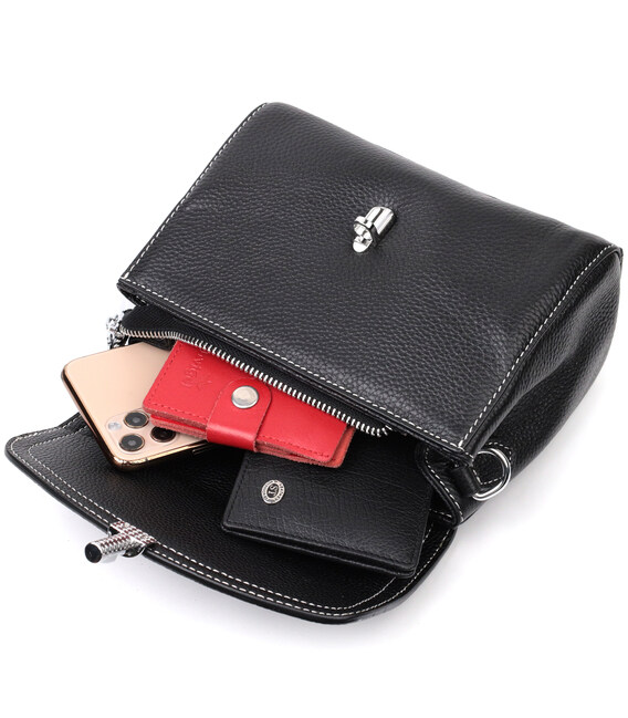 Кожаная сумка для женщин с интересной защелкой Vintage 22416 Черная