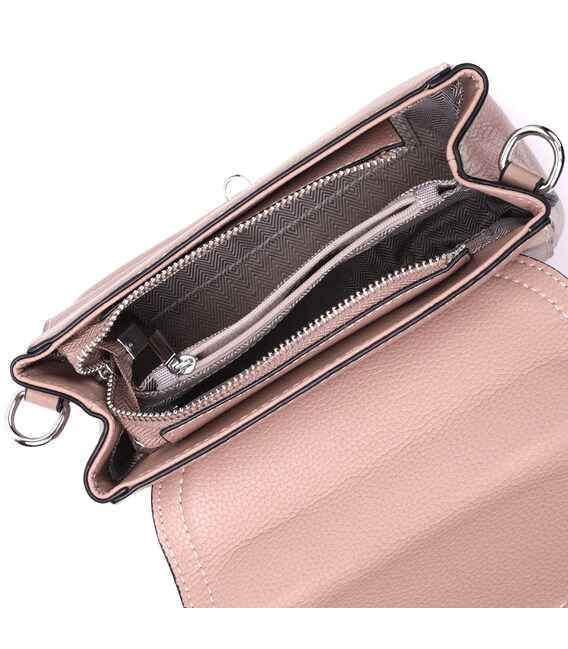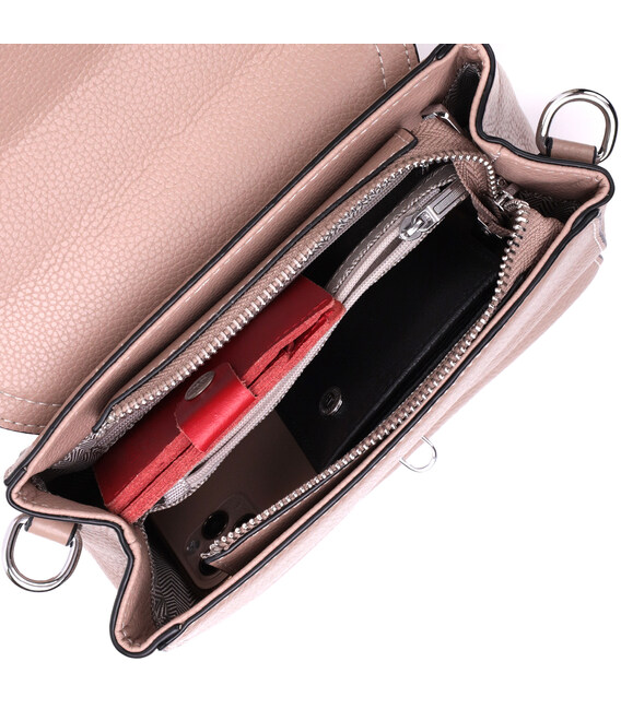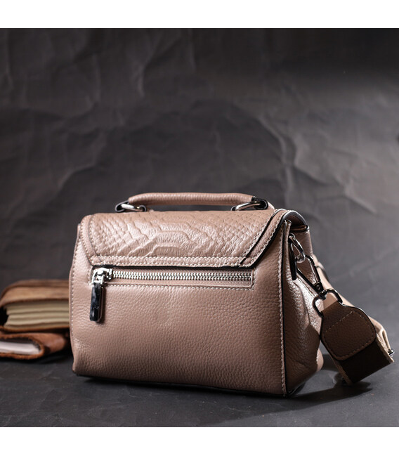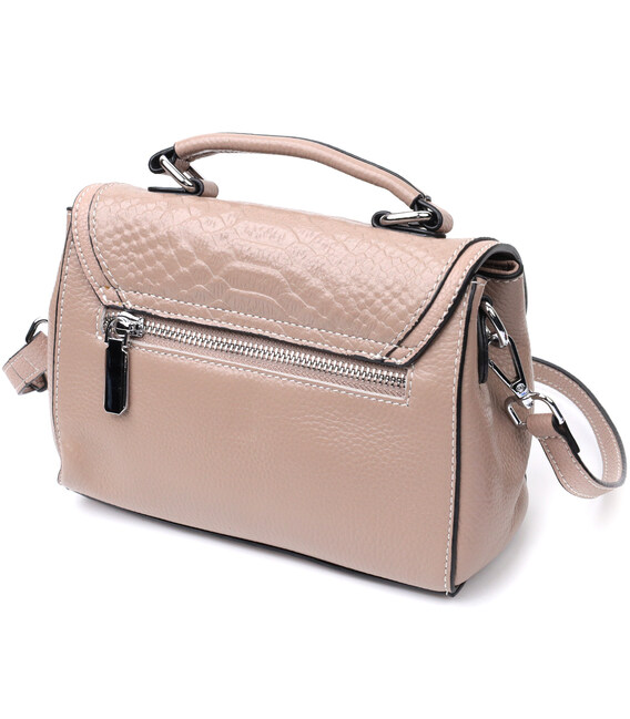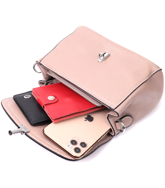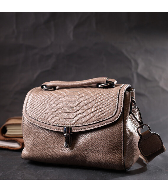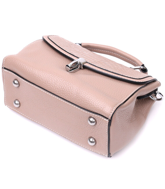 Описание Женская кожаная сумка с интересной металлической защелкой Vintage 22418 Бежевый