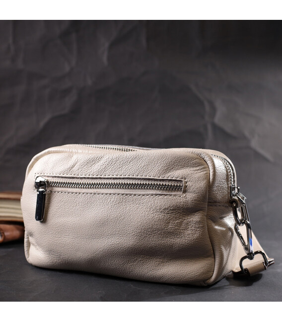 Стильная прямоугольная сумка для женщин из натуральной кожи с высоким показателем качества и износостойкости. Аксессуар состоит из основного отделения, что закрывается на молнию, внутри которого находится потайной карман на молнии и карман открытого типа, а также карман на молнии на тыльной стороне снаружи и карман на магните на лицевой стороне. Носить сумку можно на плече, через плечо для этого имеется съемный регулируемый текстильный ремень, а также как клатч под рукой. В изделии использована качественная фурнитура серебряного цвета.