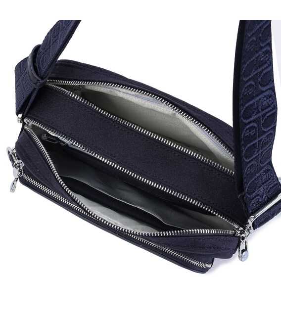 Всем любимая модель сумки-кроссовер, среднего размера. Оснащен двумя основными отделами на молнии, где в одном из присутствует дополнительный карман с RFID-защитой и крючок для ключей. Снаружи также оснащена не большими карманами, на передней и задней сторонах + изысканная съемная вешалка для ключей. Выполнена из 100% переработанного полиэстера PET (полиэфирная ткань из переработанных пластиковых бутылок). Также дополнительно. в комплекте съемная косметичка.