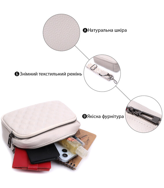Описание Женская кожаная сумка для города и повседневного использования Vintage 22633 Белая