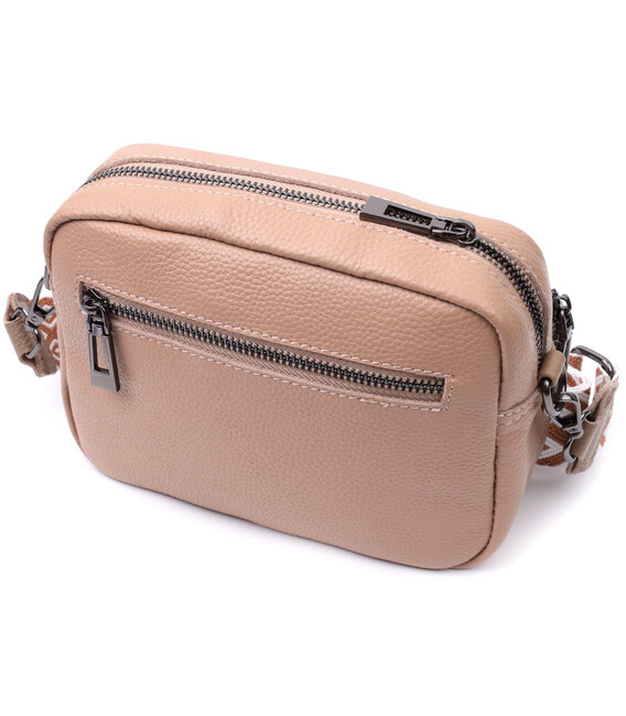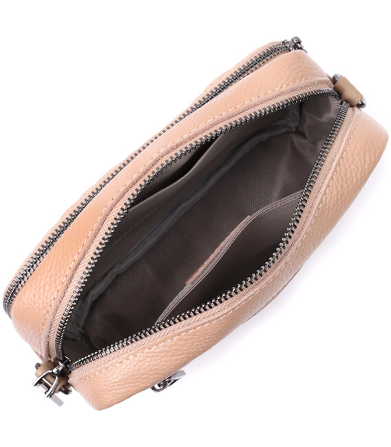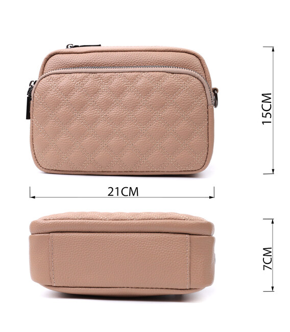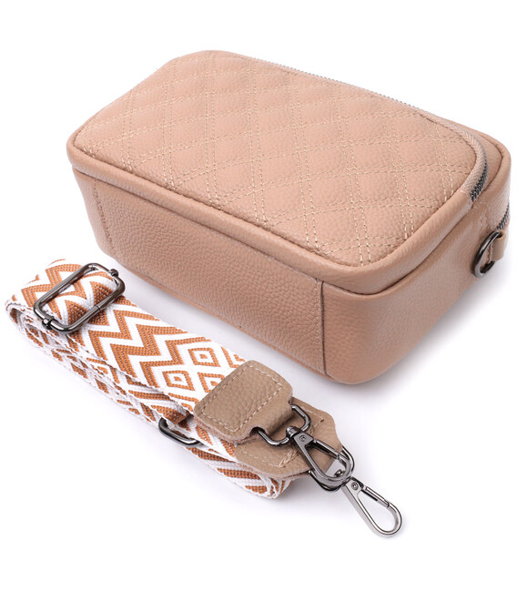 Описание Модная женская сумка прошитая ромбами на лицевой стороне из натуральной кожи Vintage 22637 Бежевая