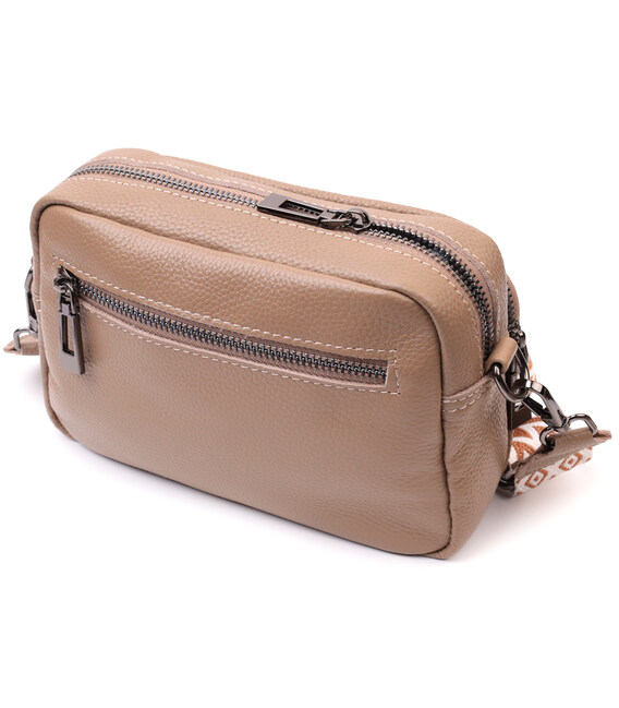 Описание Практичная женская сумка с накладным карманом из натуральной кожи Vintage 22638 Бежевая