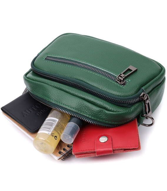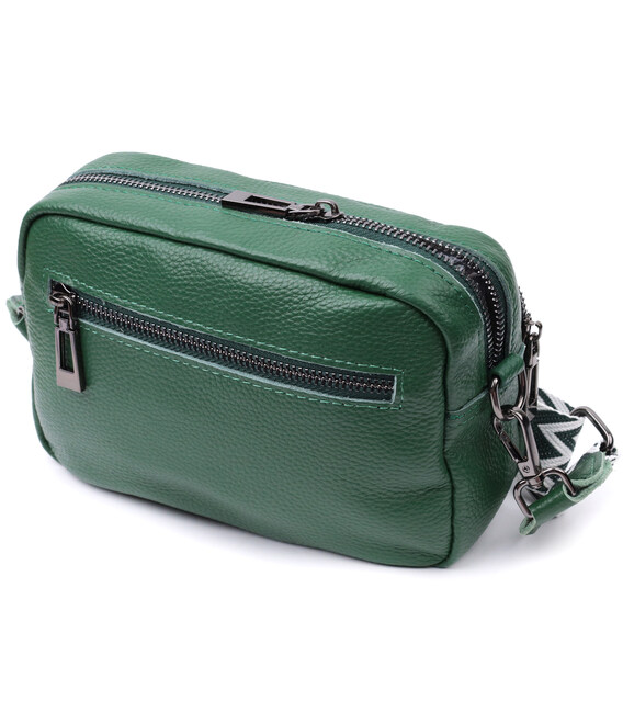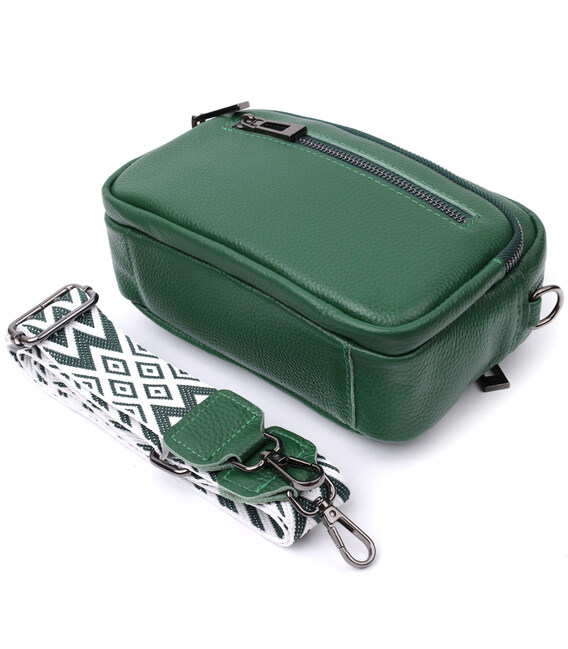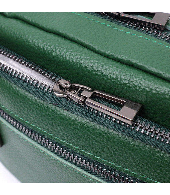 Описание Яркая женская сумка с накладным карманом из натуральной кожи Vintage 22639 Зеленая