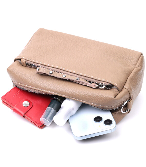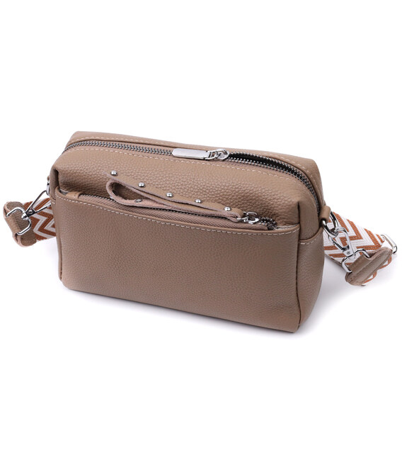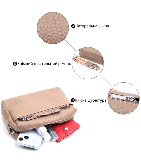 Сумка для женщин с акцентом на стильный бегунок из натуральной кожи Vintage 22650 Бежевая