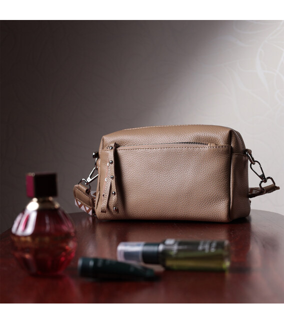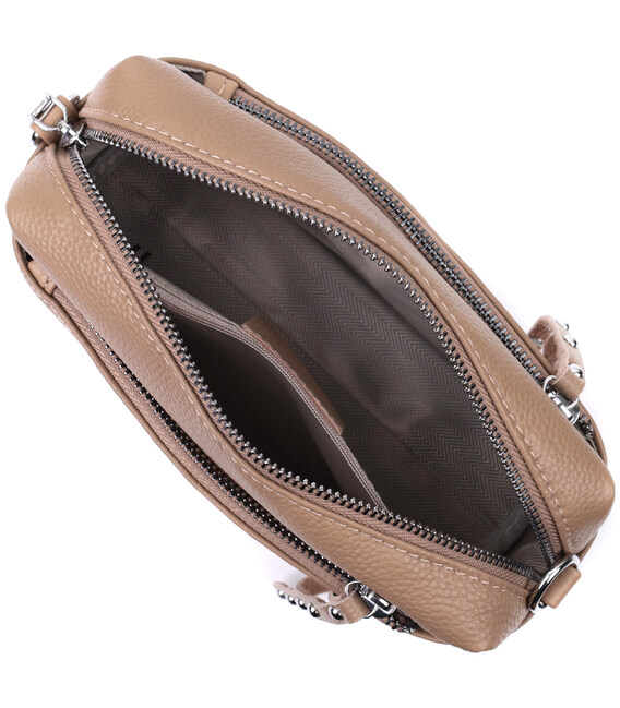 Описание Сумка для женщин с акцентом на стильный бегунок из натуральной кожи Vintage 22650 Бежевая