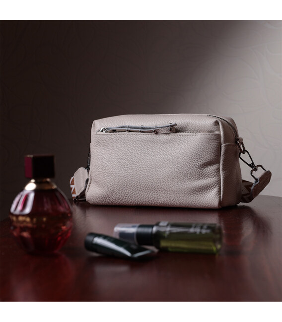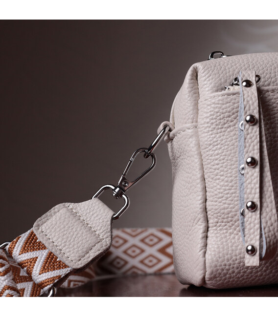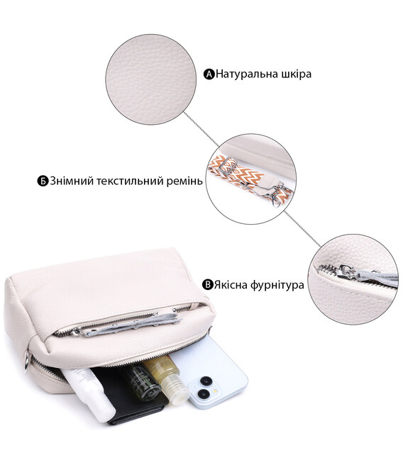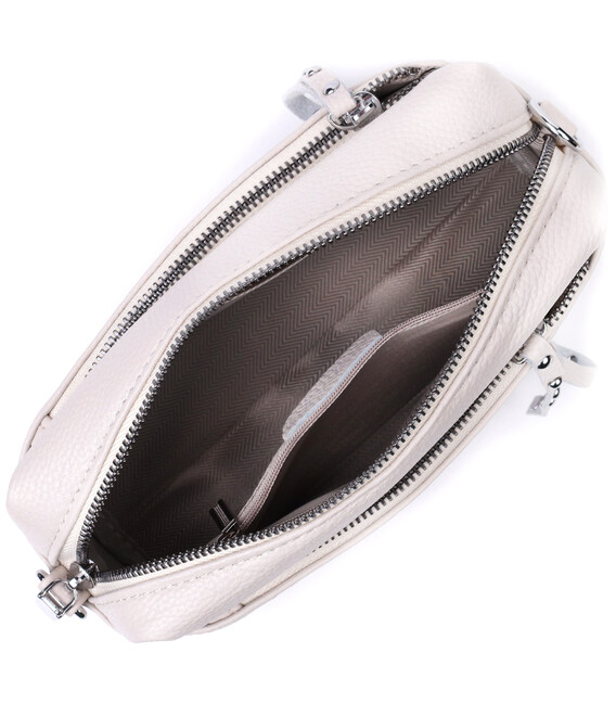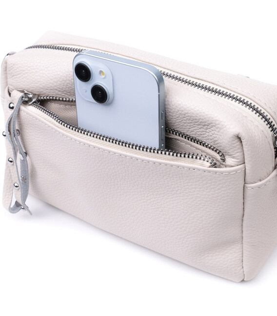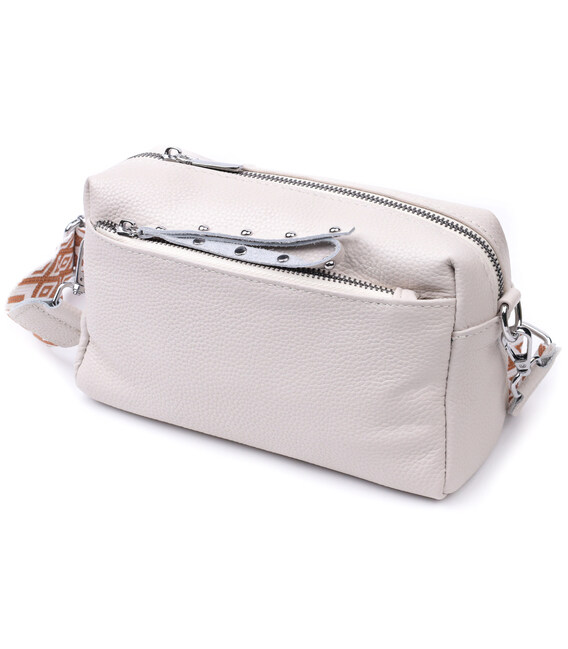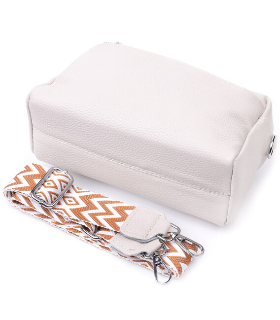 Описание Интересная женская кожаная сумка из стильным бегунком Vintage 22653 Белая