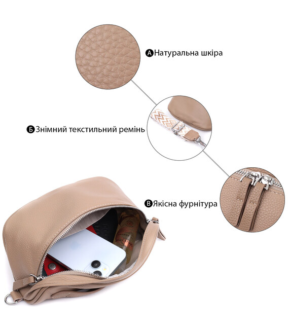 Описание Летняя женская сумка через плечо в классическом цвете из натуральной кожи Vintage 22657 Бежевая