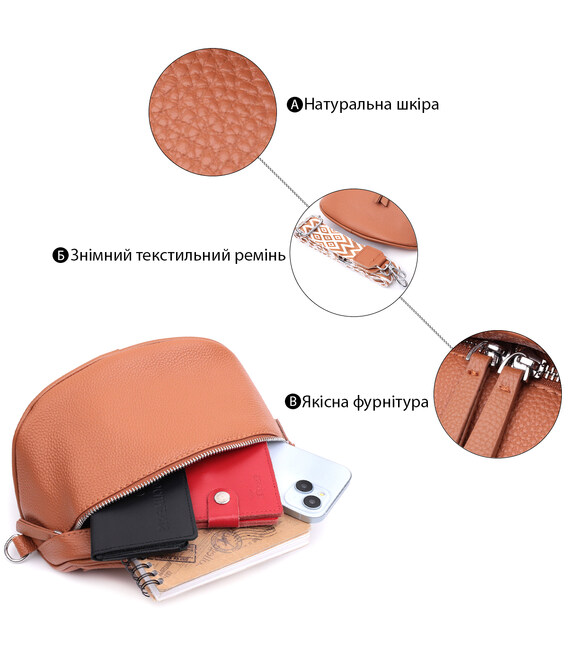 Описание Стильная женская сумка через плечо в классическом цвете из натуральной кожи Vintage 22658 Рыжая