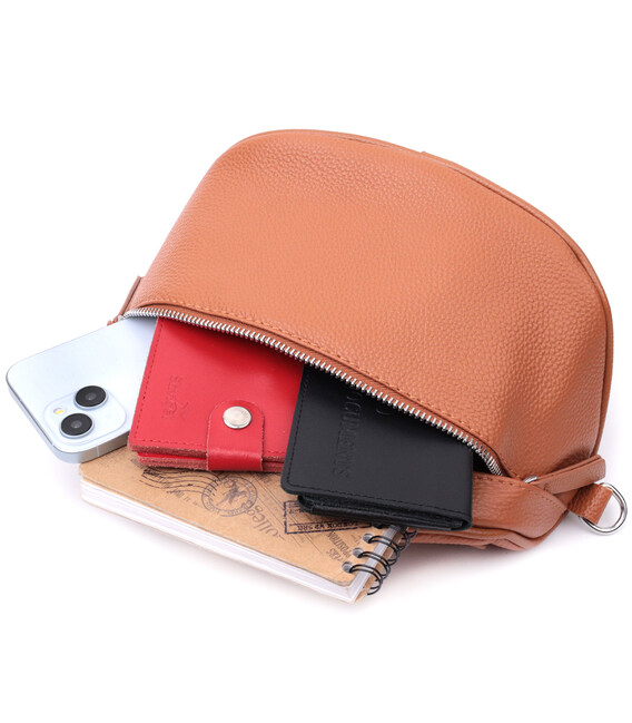 Практичная и актуальная в этом сезоне сумка через плечо из натуральной кожи. Аксессуар состоит из основного отделения, что закрывается на молнию, кармана на молнии и кармана открытого типа внутри. Носить сумку можно на плече, через плечо, а также в руках для этого имеется съемный текстильный ремень и кожаная ручка.