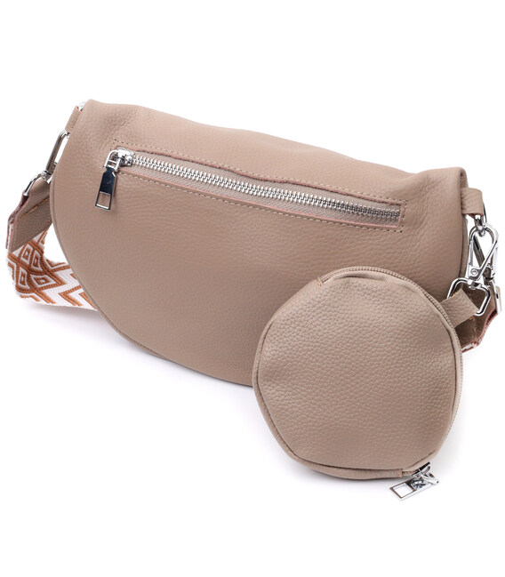 Кожаная женская сумка через плечо с мини кошельком Vintage 22663 Бежевая
