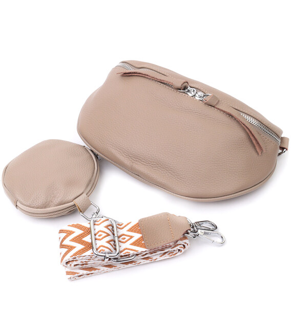 Описание Кожаная женская сумка через плечо с мини кошельком Vintage 22663 Бежевая
