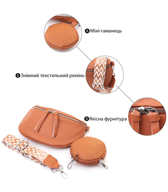 Описание Кожаная стильная сумка для женщин через плечо с мини кошельком Vintage 22665 Рыжая