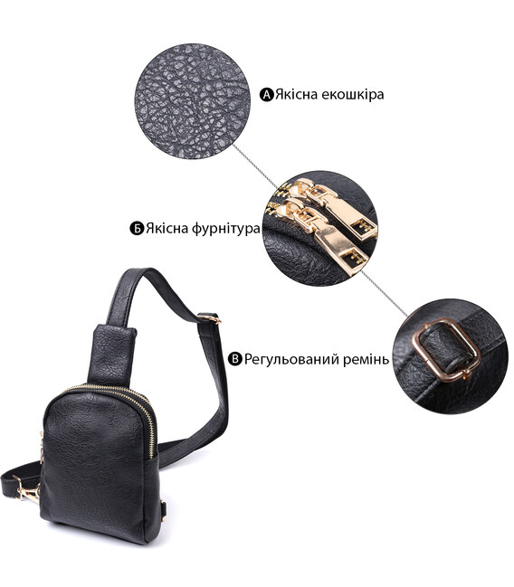 Описание Небольшая женская сумка через плечо на два отделения из экокожи Vintage 22784 Черный