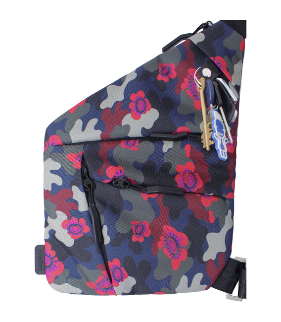 Сумка має одне основне відділення — воно найбільше та наймісткіше. Ззовні на передній стороні виробу є три додаткові відсіки на блискавці — для ґаджета, гаманця чи ключів. Згори знаходитися кишеня на кнопці для дрібниць.